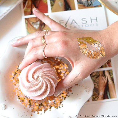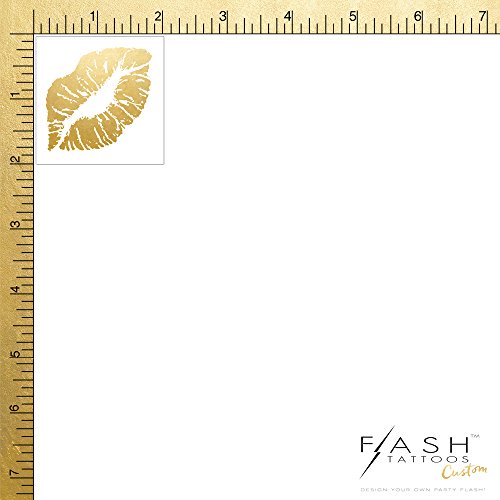 Golden Kiss set of 25 premium waterproof metallic gold lip temporary foil Flash Tattoos - use for girls night out, party favors, bachelorette parties,...