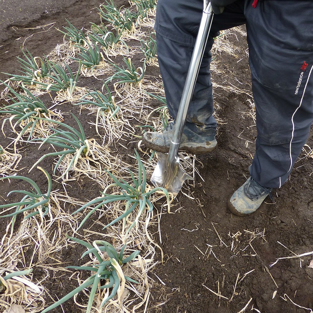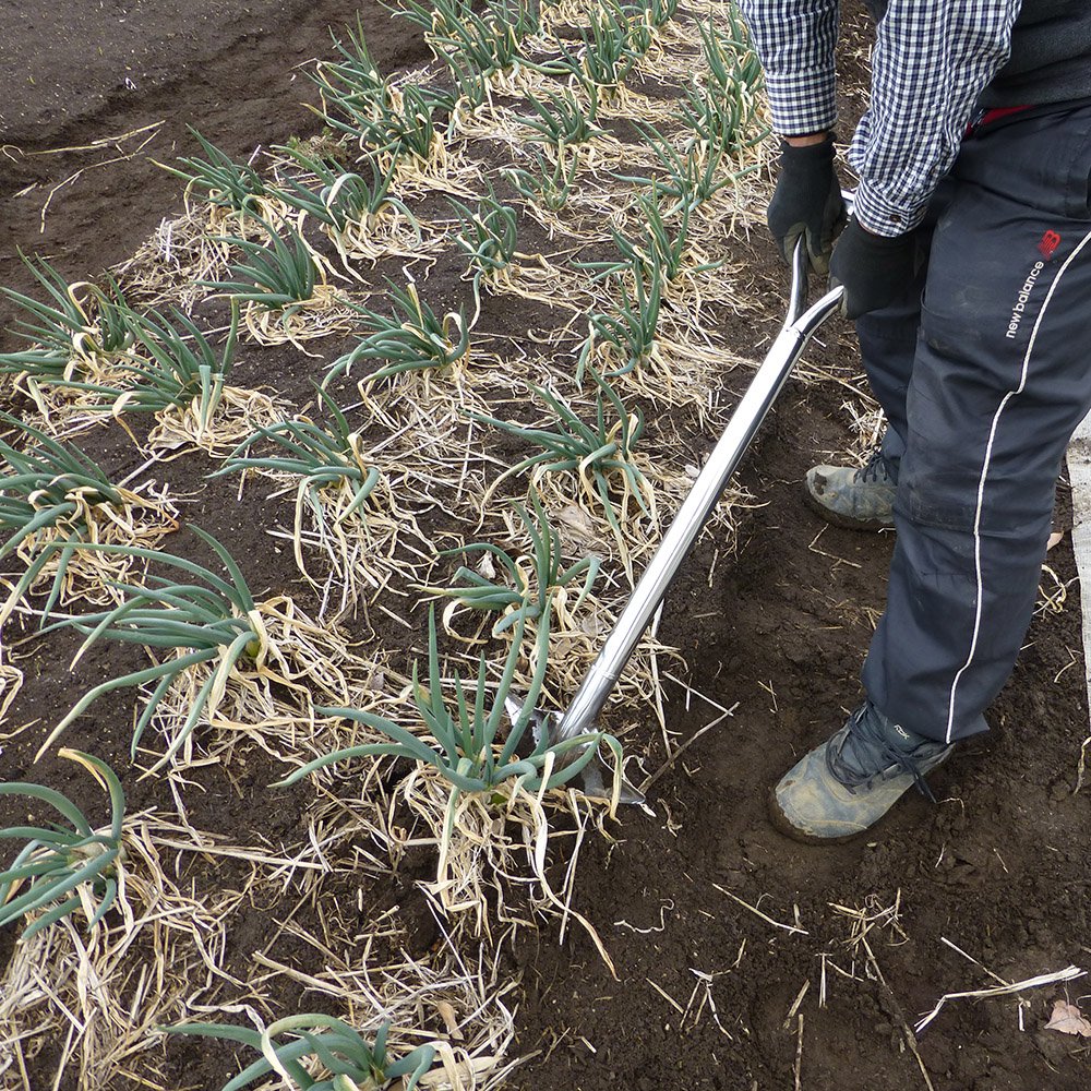 It is made of stainless steel and it is hard to rust and it is easy to get rid of soil.