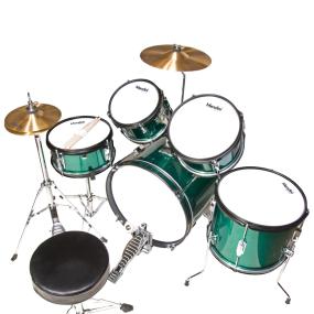 The high quality, poplar shells and rounded bearing edges give this set a nice warm tone. All drums feature four double sided lugs which make them easy to tune. Triple flanged, black powder coated hoops offer a cool look while providing extra durability and the metal bass drum hoops offer even more sturdiness. The high quality Mylar heads does not only sound great - they will withstand the beating of the little ones!