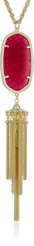 Glam it up with this gorgeous necklace! Complete your look with this fun and fabulous necklace! Rhodium plated over brass necklace with opaque glass pendant and fringe accent. Gold-tone with faceted stone and chain pendant. Lobster-claw closure. Lobster-clasp closure. Imported. Measurements Chain Circumference 30 in Adjuster Length 1 in Pendant Height 6 in Pendant Width 1 in Weight 1.5 ozFeature