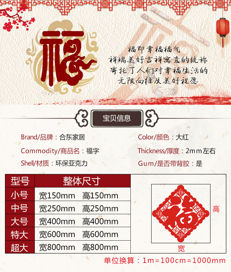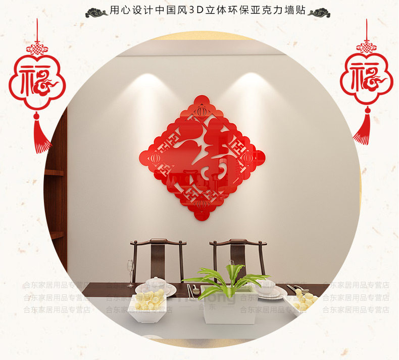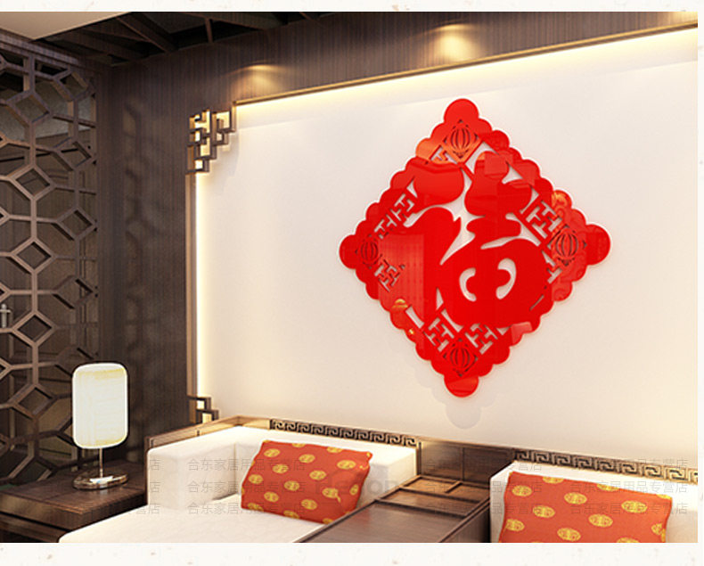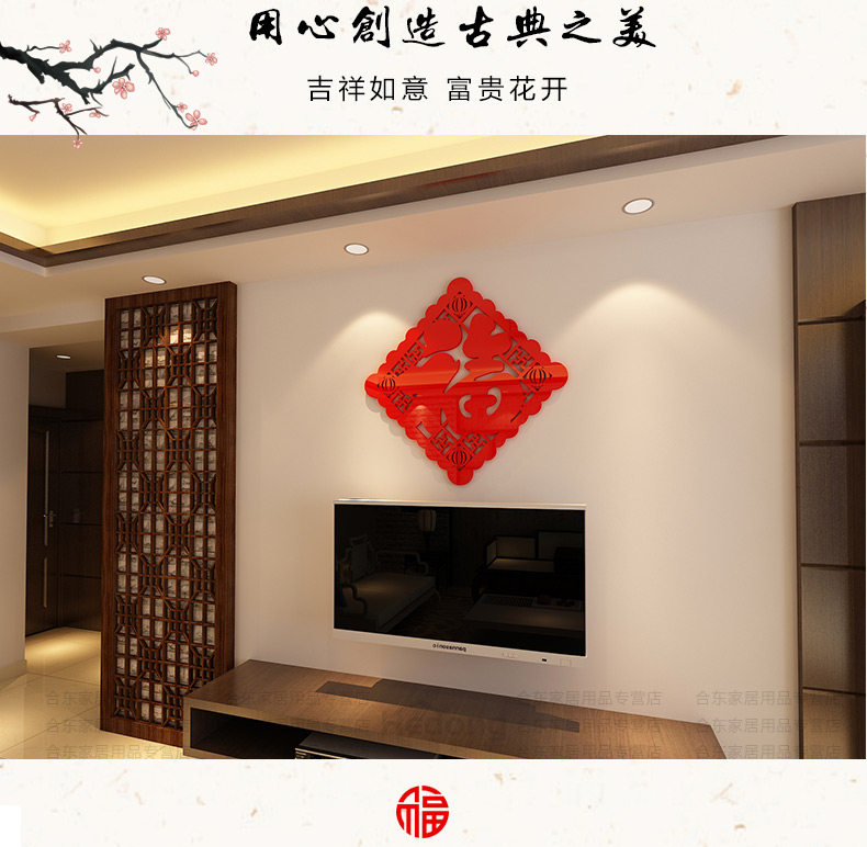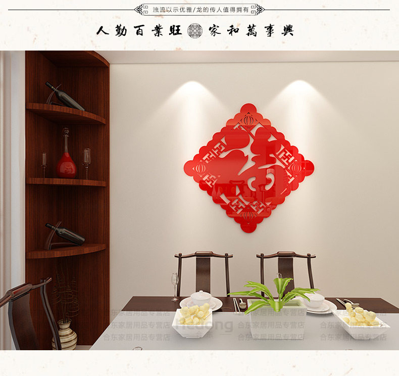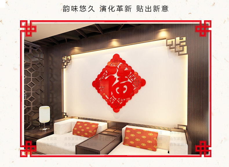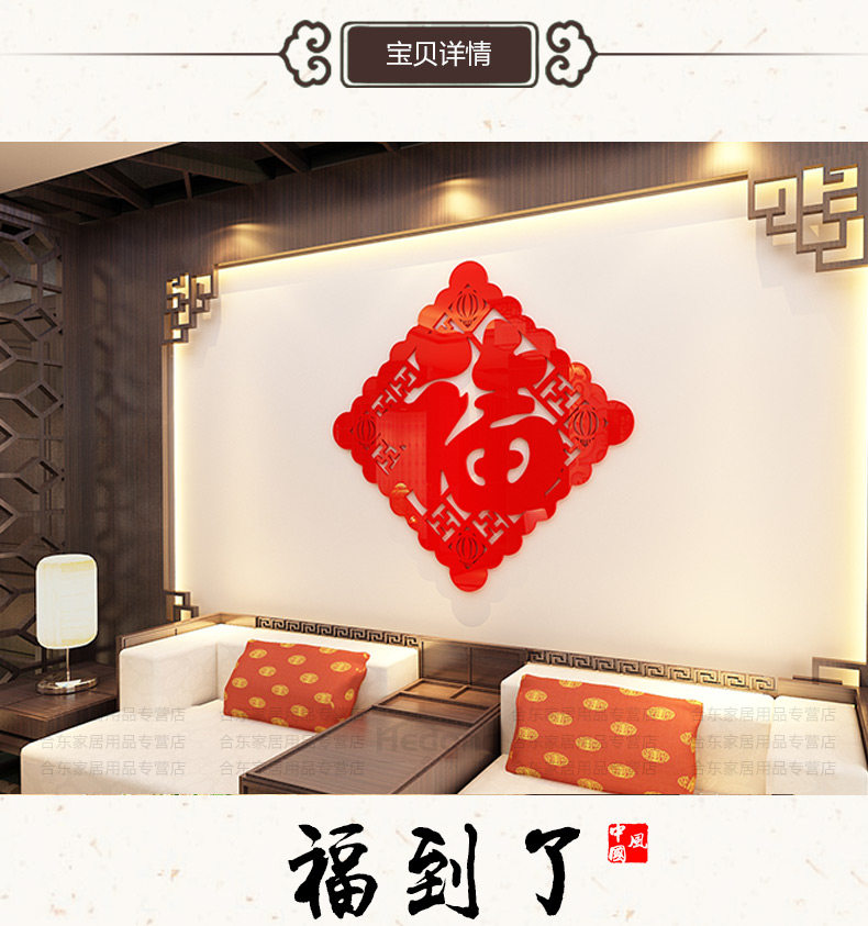 福字字画墙贴亚克力中国风3d立体墙贴画客厅玄关门贴背景墙壁装饰