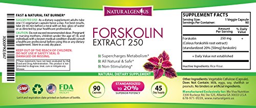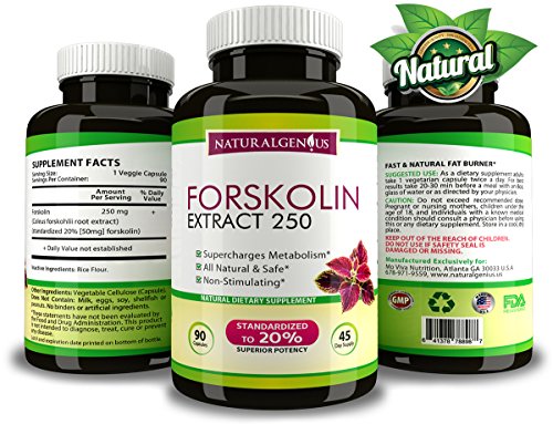 -. Feature : HERBAL METABOLISM BOOSTER: [SALE TODAY ONLY! Grab a bottle now] Forskolin is found in the roots of an herbal plant from the mint family, which historically grows in India. Researchers have found that forskolin can help to promote the breakdown of stored fats in animal and human fat cells and aid weight loss. It may also release fatty acids from adipose tissue, which results in increased thermogenesis, resulting in loss of body fat and, theoretically, increased lean body mass. / LOSE WEIGHT SAFELY & NATURALLY: This fast acting supplement contains NO binders or artificial ingredients. You get natural weight loss & SLIMMING goodness in 90 VEGGIE capsules (NOT gelatin). Forget the weak extracts offering just 10% extract or 125mg per cap. Natural Genius offers a true FULL 45 day supply of high potency 20% standardized extract. We go where the science tells us, and the science says you NEED high potency and high dose to experience increased metabolism effects. / POTENT FAT BURNER & BELLY BUSTER: Works for MEN & WOMEN. Natural Genius uses only 100% safe and natural products, backed by comprehensive scientifically tested ingredients in vegetarian capsules. Every single batch we sell is guaranteed for purity by a third party lab. Our products are 100% MADE IN USA in a state of the art GMP certified, and FDA registered facility. This is the purest, safest, most potent coleus forskohlii extract on the market! / YOU GET 90 BELLY BLASTING CAPSULES ★ 250mg per serving ★ 100% safe & natural ★ No binders or artificial ingredients ★ A full 45 day supply in just 1 bottle ★ ORDER TODAY / 45-DAY MONEY BACK GUARANTEE: Order now and you'll be protected by our 45-day no questions asked money back guarantee. If you don't experience increased metabolism, decreased appetite, and measurable fat loss in belly, thighs, chest and more, simply return the bottle for a full refund. You have nothing to lose and the risk is on us. We've set the standard for Customer Service, and your satisfaction is our top P.R.Iority. Click ADD TO CART