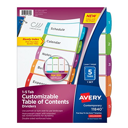 Avery Customizable Table of Contents Dividers, 5-Tab Set (11840)