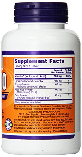 ReleaseDate : 2015-07-16 Studio : Now Foods Publisher : Now Foods Binding : Health and Beauty Product Description Vitamin C is perhaps the most popular vitamin known to man. It is consumed in a supplemental form by millions of people across the world for its antioxidant properties, which are well-documented in medical research. C-500 provides a potent dosage of this key vitamin and is blended with Bioflavonoids, Acerola, Rose Hips and Rutin, which are natural synergists to Vitamin C. From the FDA's website: "Some scientific evidence suggests that consumption of antioxidant vitamins may reduce the risk of certain forms of cancer. However, FDA has determined that this evidence is limited and not conclusive." 0