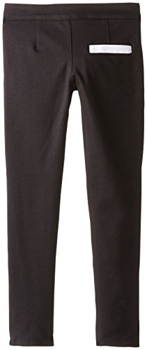 Knit ponte pant. Contrast color side leg stripe. Snap waist