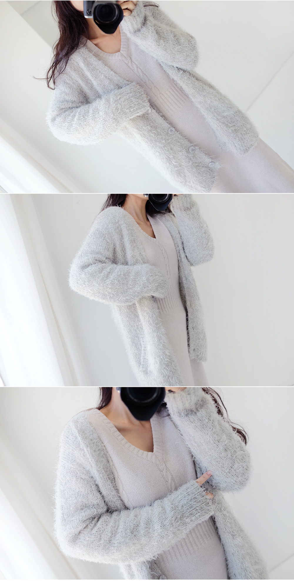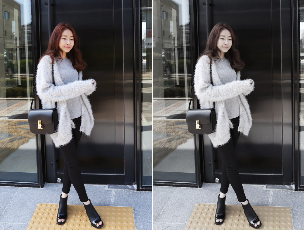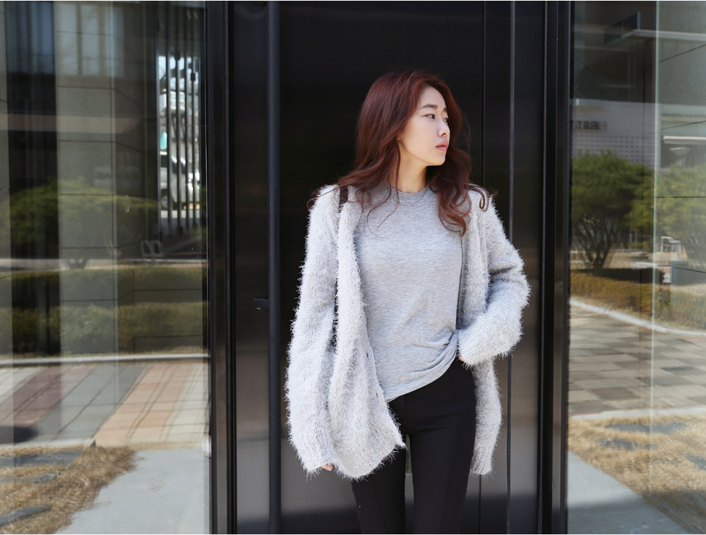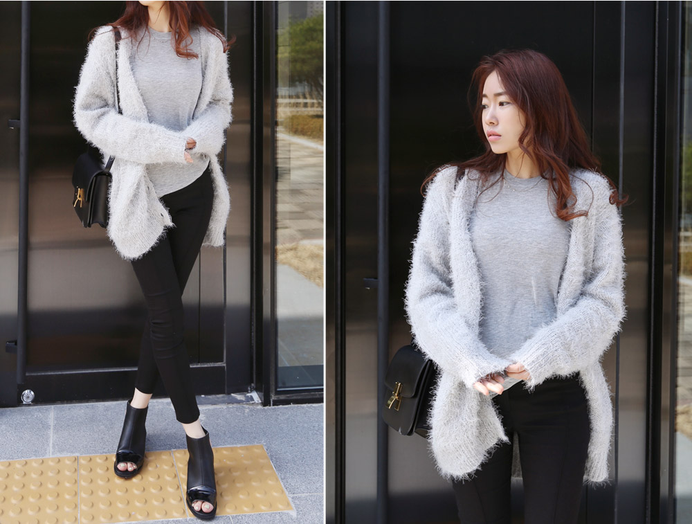 날개사 소재로 입체감이 매력적인 가디건이에요.