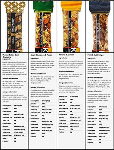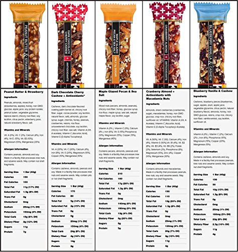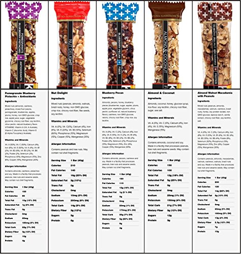 Bundle includes 1.4 oz BARS: (1) Almond Apricot, (1) Almond Coconut, (1) Almond Walnut Macadamia, (1) Apple Cinnamon Pecan, (1) Blueberry Vanilla Cashew, (1) Blueberry Pecan, (1) Cranberry Almond, (1) Dark Chocolate Cherry Cashew, (1) Fruit Nut , (1) Maple Pecan, (1) Nut Delight, (1) Peanut Butter Strawberry, (1) Peanut Butter Dark Chocolate, (1) Pomegranate Blueberry Pistachio