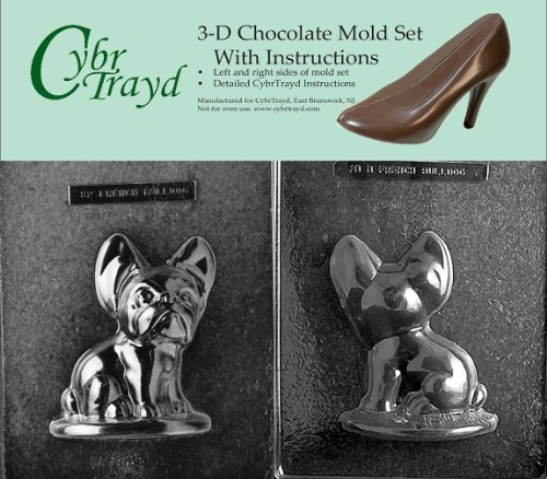Cybrtrayd DOG028AB Chocolate Candy Mold, Includes 3D Chocolate Molds Instructions and 2-Mold Kit, French Bulldog
