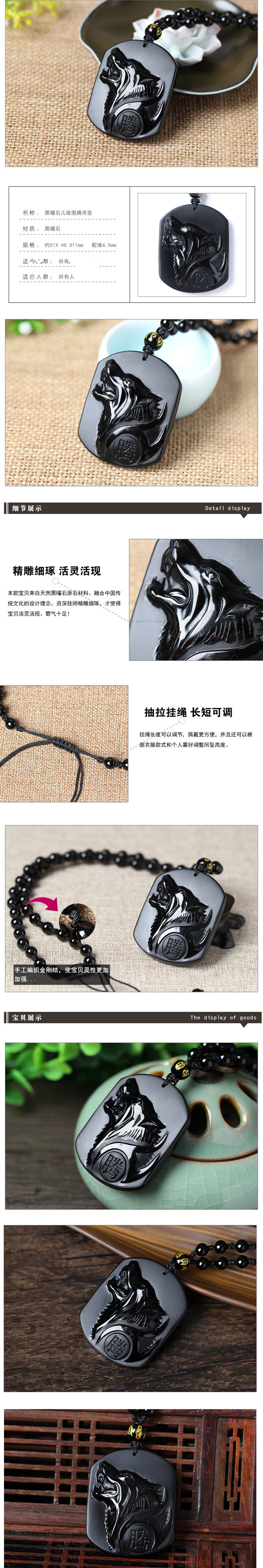 开光天然磨砂黑曜石虎虎争辉吊坠生肖开运物
