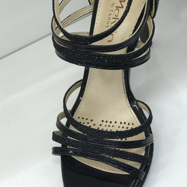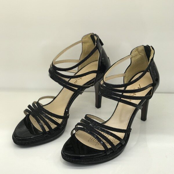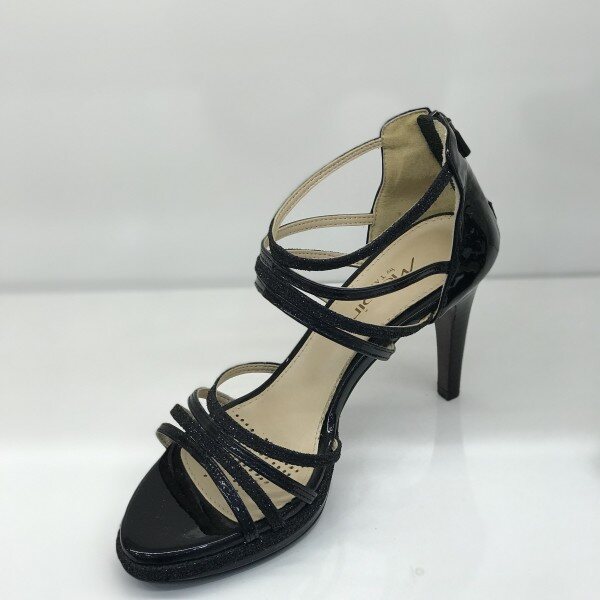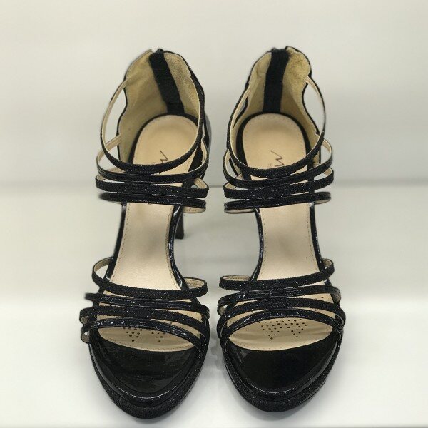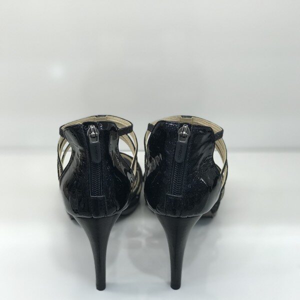 소재: 소가죽굽: 8CM색상: 블랙블랙 색상의 하이힐 샌들입니다.검정색이지만 펄로 인해 밋밋해 보이지 않고, 높은 굽이지만 가부시로 인해 발의 무리가 덜합니다.또한 뒤에 지퍼로인해 발꿈치 노출이 꺼려지는 분들에게 추천드립니다.