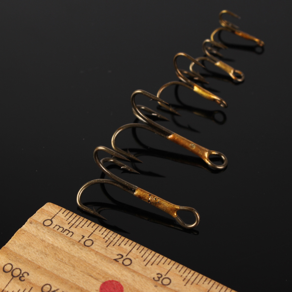 Product details of HKS Treble Mix Fishhook Carbon Steel Jig Golden 2/4/6/8/10# 50Pcs/Box