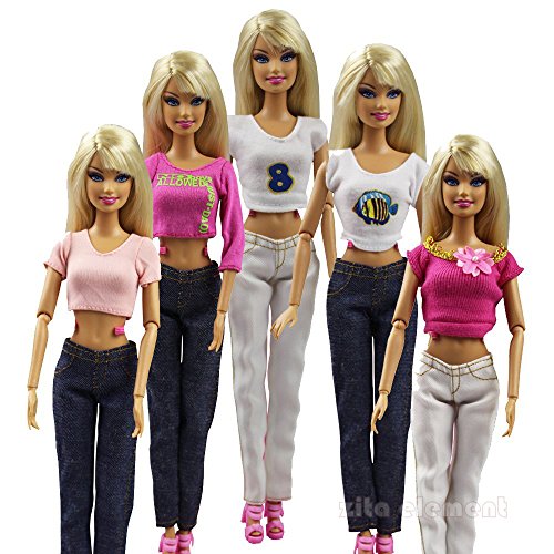 ZITA ELEMENT LOT 5 Handmade Blouse + Trousers Pants Outfit Casual Wear for Barbie Clothes / Barbie Clothes Package include: