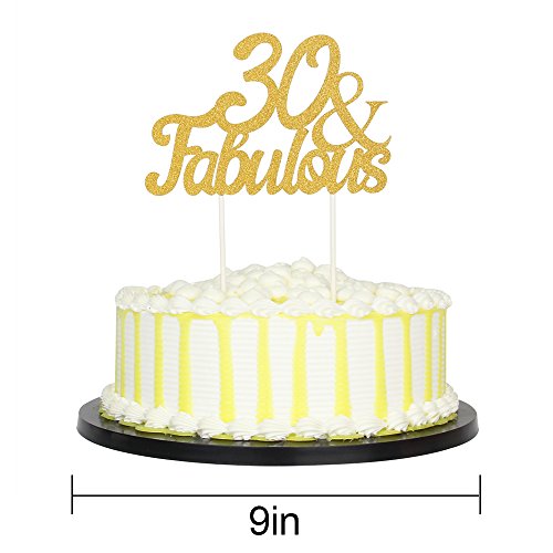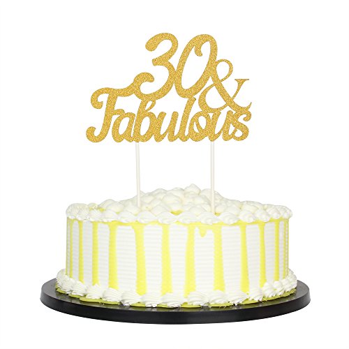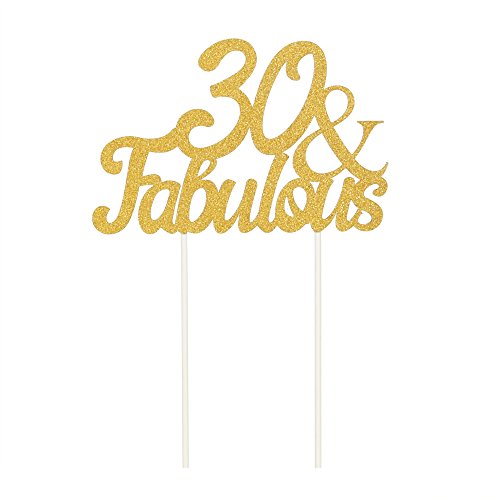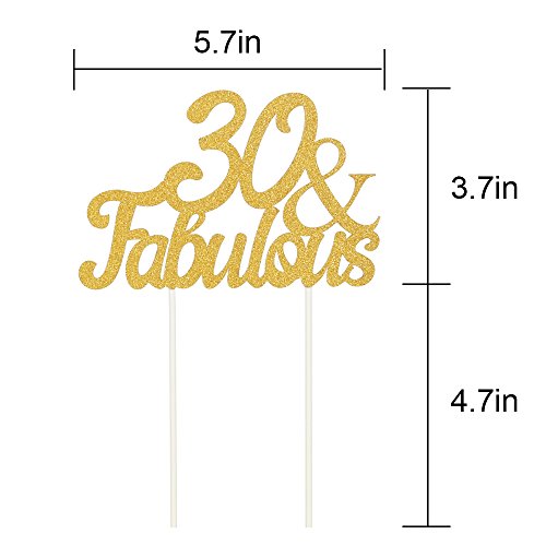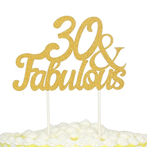 PALASASA Gold Glitter 30 & Fabulous Cake Topper, Wedding, Birthday, Anniversary, Party Cupcake Topper Decoration