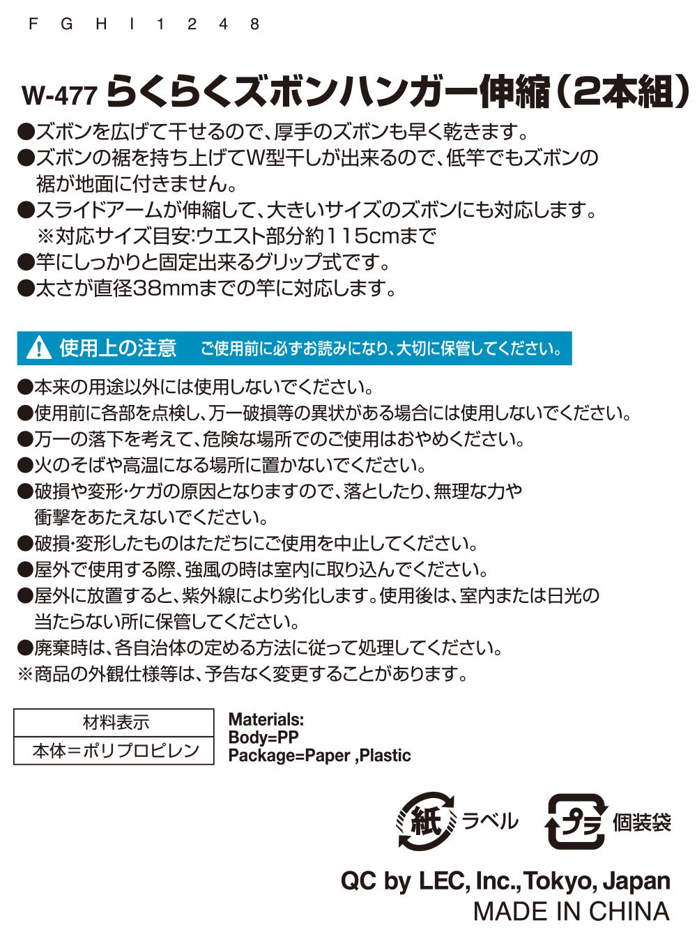 ● The slide arm expands and contracts, it can correspond also to large size trousers (waist up to about 115 cm).