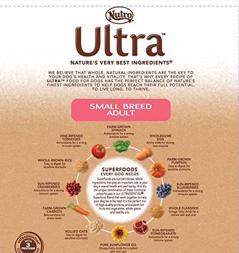 -. Binding : Misc. -. Brand : Nutro -. Feature : Easier to chew kibble made specifically for small breeds / Rich in essential fatty acids for a healthy skin and a shiny, soft coat / Three animal proteins provide essential Amino Acids that help promote lean muscle mass / Antioxidant-rich superfoods help build and maintain a healthy immune system / Made in the USA -. Label : Nutro -. Manufacturer : Nutro -. Model : ULTRADDFADULT-Parent -. MPN : ULTRADDFADULT-Parent -. PackageQuantity : 1 -. PartNumber : ULTRADDFADULT-Parent -. ProductGroup : Pet Products -. ProductTypeName : PET_SUPPLIES -. Publisher : Nutro -. Studio : Nutro -. Title : NUTRO ULTRA Adult Dry Dog Food