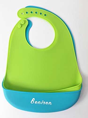 - Feature : Absolutely Adorable - Adorable colors and style for your adorable little one. A variety of colors to choose from. Regardless of boy or girl, you will find the perfect color. This is one item many will not duplicate at the baby shower. / Adjustable - The neck size is adjustable to allow for babies and toddlers to use. Perfect for when they start sitting up and ready to be fed from the spoon. The handy front pouch catches most of the mess depending on what's being fed. / Comfortable - Soft silicone makes it non irritating to wear. Free of toxins and BPA! Safe to be worn and chewed by toddler. Although, not advisable to use as a teether, we wouldn't want any accidental pieces to be torn and possible swallowing. / Eco-friendly - Save energy on constant machine washing - Save money and the landfill from disposable bibs. Easily wipes clean with a soapy hand towel. A wipe can be used for those small clean-ups. / Get 2 in pack - Rather you have multiples or one, you can always use a spare bib. Keep stored in your bag for use when away. The flexible silicone can be rolled to fit in your bag. Keep in a storage bag while away until home to clean for those fun family outings.