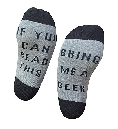 -. Feature : HIGH QUALITY COTTON SOCKS - Made from 80% combed cotton, soft, comfortable, stretchy and breathable. Smell free, moisture wicking, medium thickness, machine washable, hold up well in the laundry. Suit for slippers, sandals, casual, athletic, dress or formal shoes. Elastic and enhanced cuffs hold socks comfortably in place, they will not dig into your shins. / ONE SIZE FITS MOST - Fits shoe size, womens 5-11. Comfortable soft stretch cotton. They are elastic and perfectly make it suitable for your feet. / FUNNY AND COOL DESIGN - All the words are stitched directly into the socks instead of an iron-on transfer, so it won't peel off. Novelty socks that will make your friends giggle! / FUN GIFT: IF YOU CAN READ THIS, BRING ME A COLD BEER, wear to work, on a date, or lounging around the house! Gifts for Bridesmaids, Groomsmen, Hostess or Housewarming or Birthday Gift. Perfect christmas present for family members, friends and anyone you love. Making you be full of energe. / Applicable to many occasions - Casual, Wear to Work, Sports, boot, hiking, running, exercise etc.