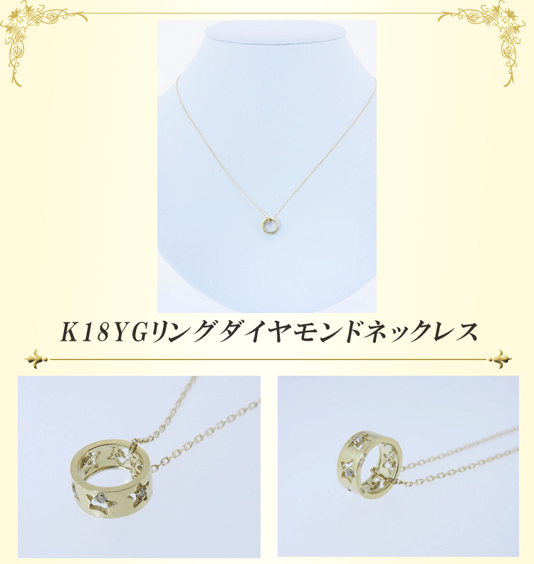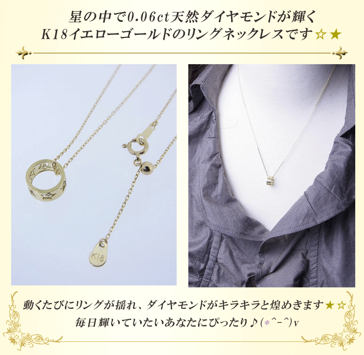 商品説明 星の中で0.06ct天然ダイヤモンドが輝くK18イエローゴールドのリングネックレスです。