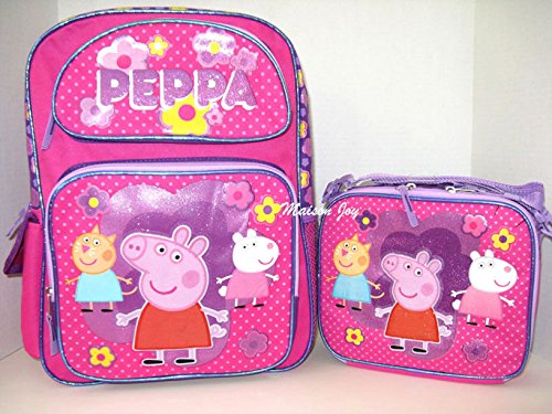 -. Title : New Peppa Pig Allover Flower Small Toddler Rolling Backpack with Matching Lunch Bag