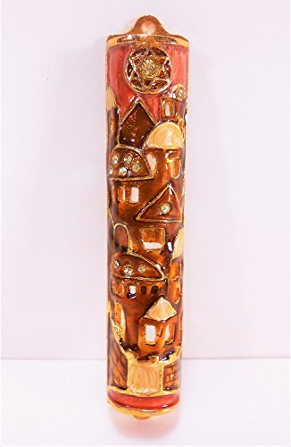 Ciel Collectables Mezuzah with House Design & Star of David, Hand Set Swarovski Crystal
