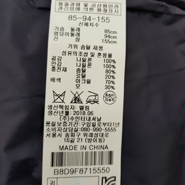 구스 숏다운55기준 총장 58cm