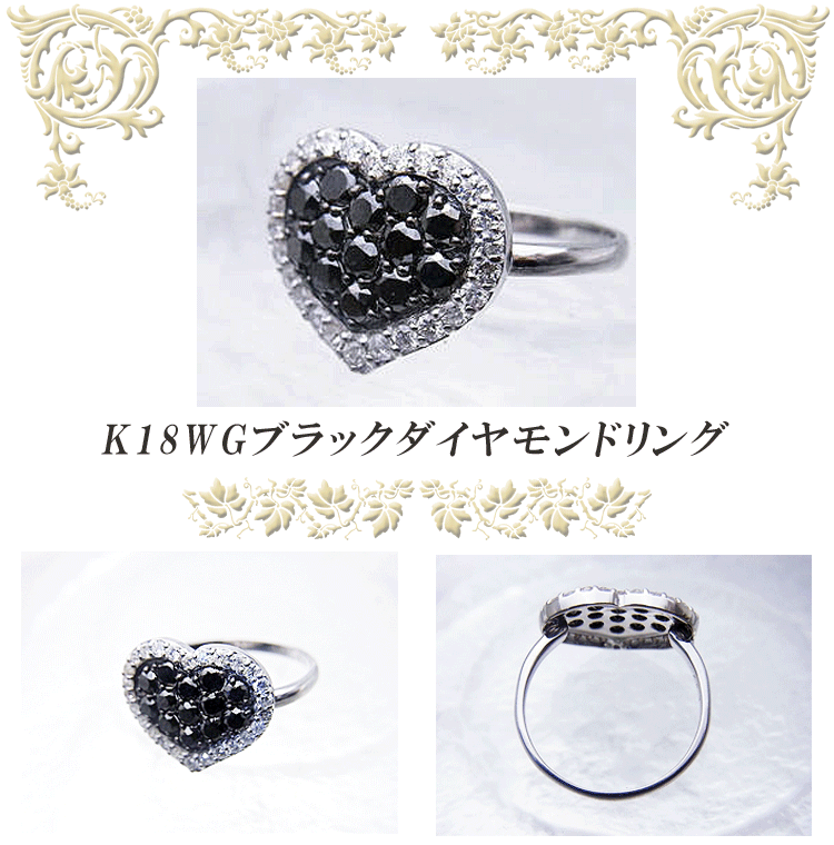K18WGハートブラックダイヤモンドリング