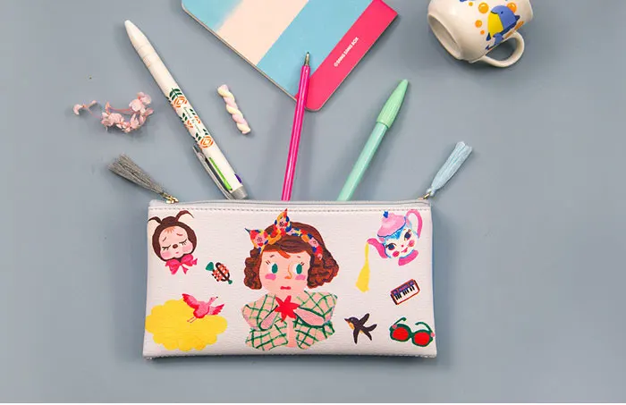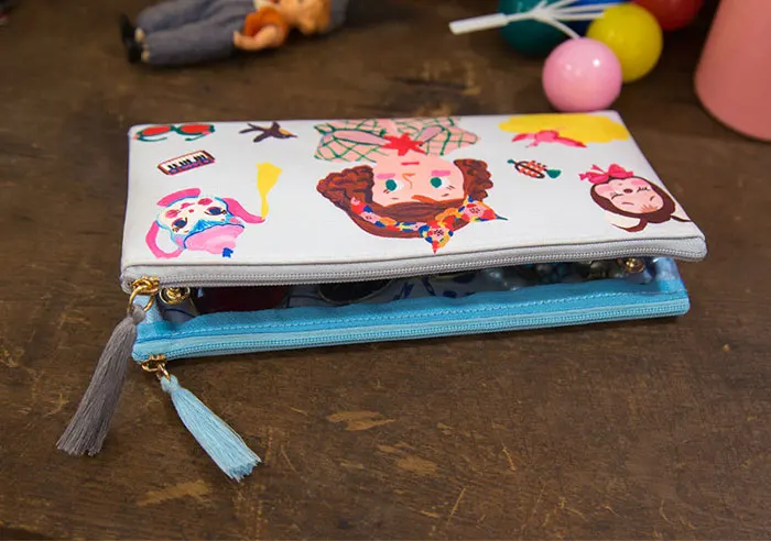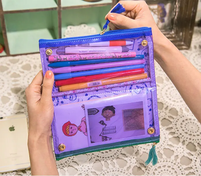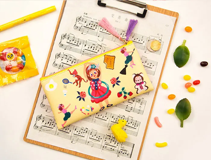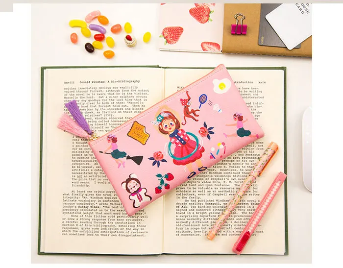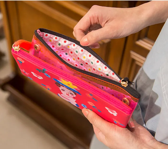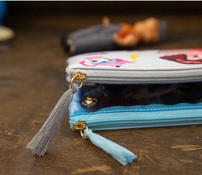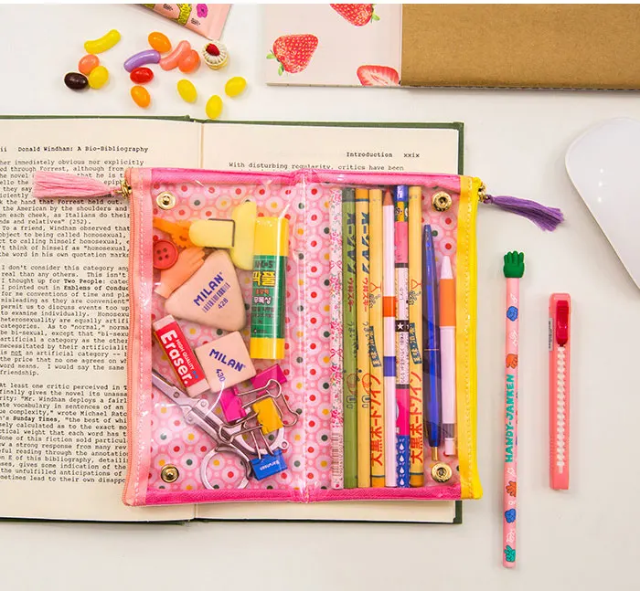 製品名:ジェイミーノートダブル異なる側ジッパー鉛筆バッグ化粧バッグヴィンテージカワイイ静止文房具女の子ギフトスクール用品