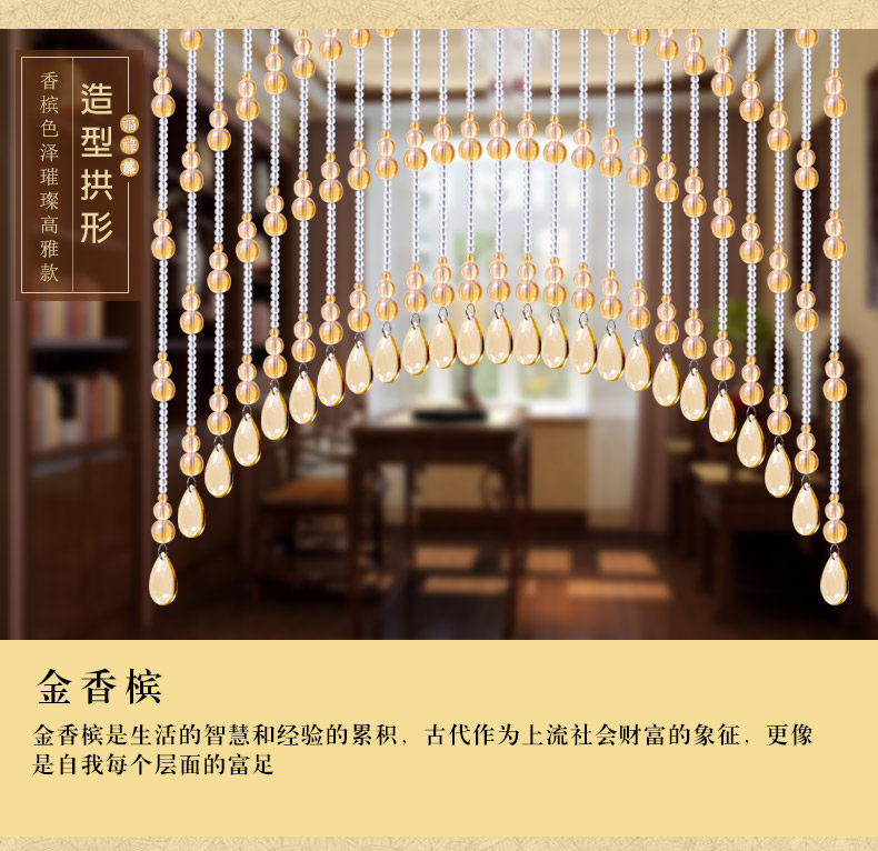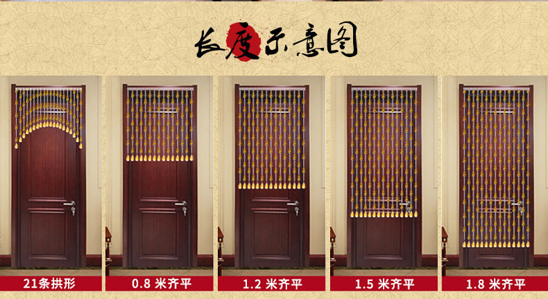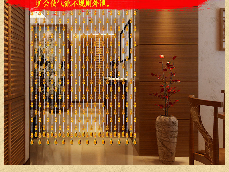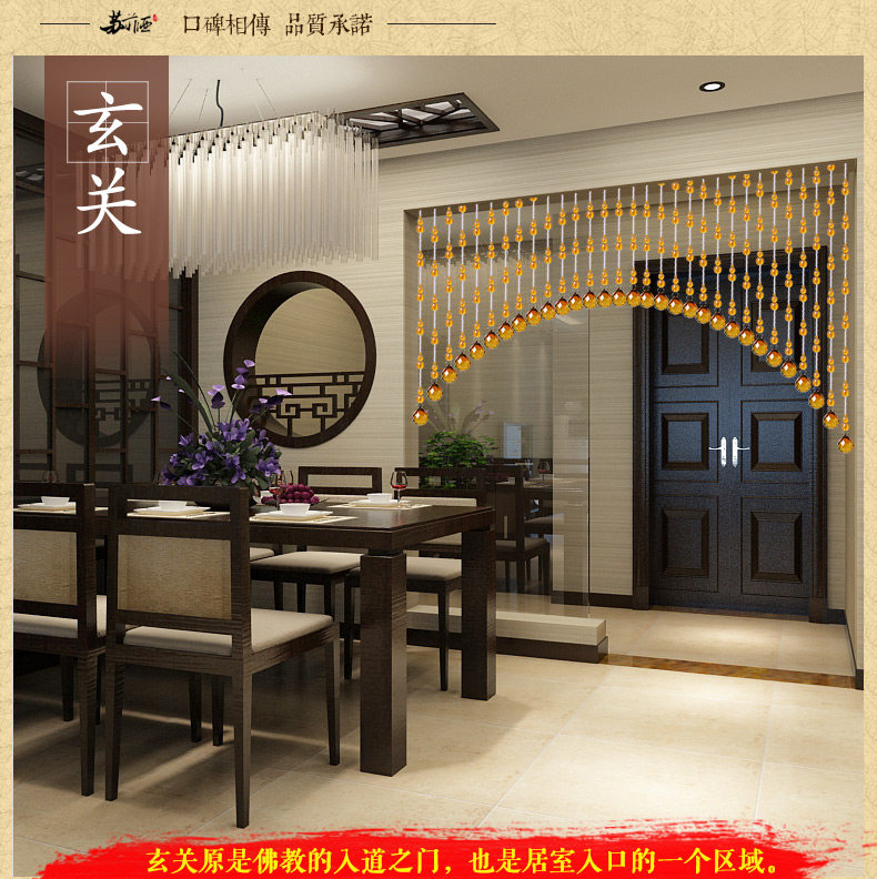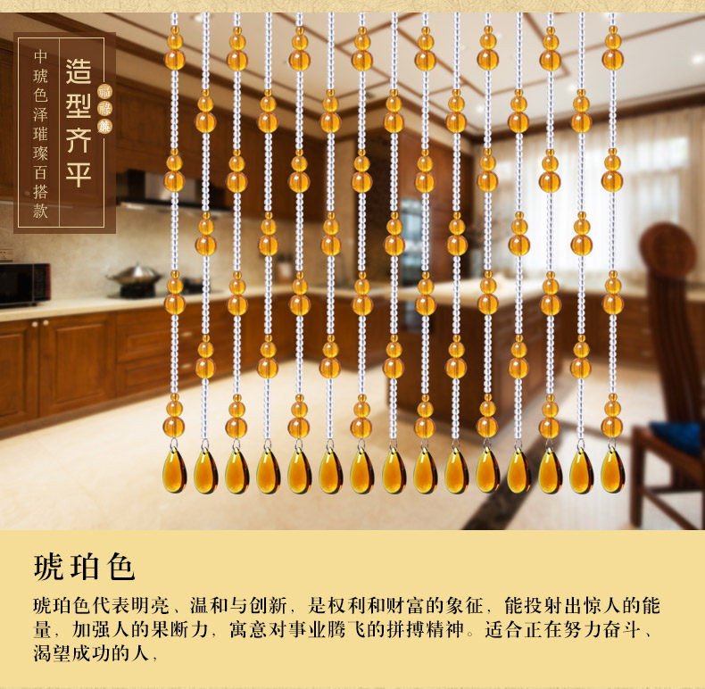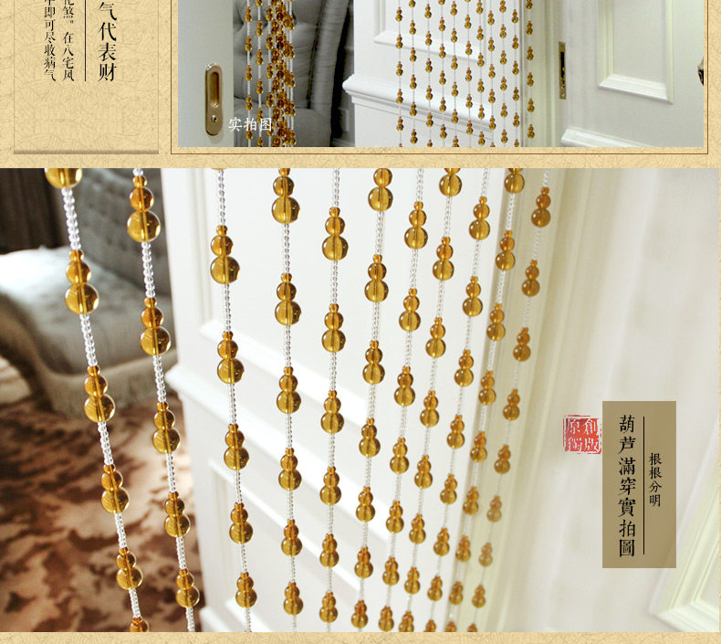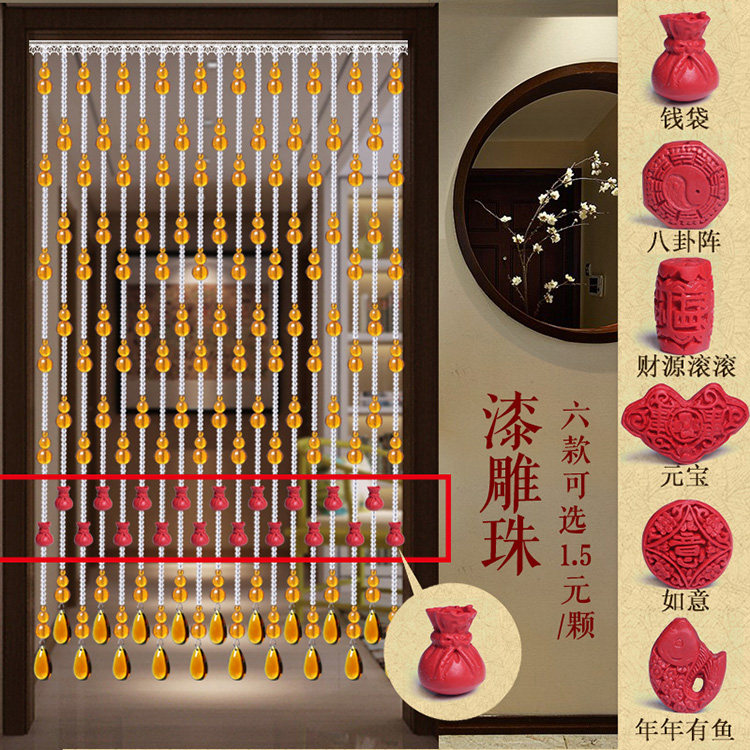 珠帘穿法有三种,第一种是满穿加密款,一般用于过人,可防缠绕。有风水招财辟邪用途。第二种:定位款式,中间有线留出,使珠 帘更加生动精致第三种:不锈钢连接穿法,一般款式有八角珠,长条款式,大气时尚. |