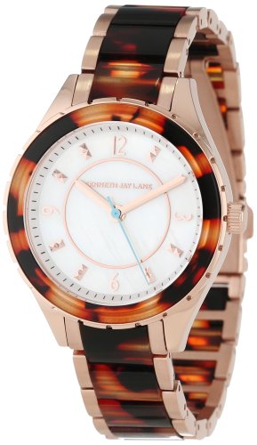 -. Binding : Watch -. Brand : Kenneth Jay Lane -. Color : Rose-Tone/Mother of Pearl -. Department : womens -. EAN : 0722630013617 -. Feature : Japanese quartz movement / Mineral crystal; rose gold ion-plated stainless steel case and bracelet with brown tortoise resin center links / Blue second hand / Mother of pearl dial with rose gold tone hands, hour markers and Arabic numerals; rose gold ion-plated stainless steel bezel with brown tortoise resin top ring / Water resistant to 165 feet (50 M): suitable for swimming and showering -. Label : Kenneth Jay Lane -. Manufacturer : Kenneth Jay Lane -. Model : KJLANE-2209 -. MPN : KJLANE-2209 -. PackageQuantity : 1 -. PartNumber : KJLANE-2209 -. ProductGroup : Watch -. ProductTypeName : WATCH -. Publisher : Kenneth Jay Lane -. ReleaseDate : 2013-06-12 -. Size : Standard -. Studio : Kenneth Jay Lane -. Title : Kenneth Jay Lane Women's KJLANE-2209 Mother-Of-Pearl Dial and Brown Tortoise Resin Watch -. UPC : 722630013617