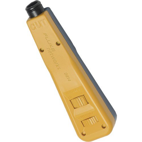 The D814 Series punch down tool is an industry standard punchdown tool and incredibly durable. It accepts standard industry blades and is lightweight and easy to use. Its adjustable impact wheel has high and low settings for any type of termination. Automatic spring mechanism provides right impact to seat and/or terminate wires. The compartment at the end of the tool stores an extra blade for your convenience.Feature