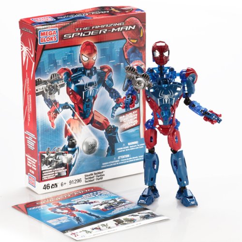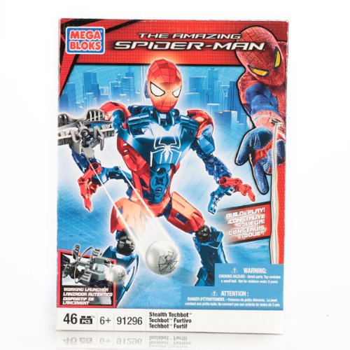 -. Binding : Toy -. Brand : Mega Bloks -. EAN : 0065541912960 -. Feature : Includes 46 buildable pieces that turn into Stealth Spider-Man / 10" fully poseable Techbot with disk launcher that really fires / Stand and fight, swing over villains and protect civilians / Interchangeable parts - build your own custom Techbot for any situation -. Genre : strategy -. ItemPartNumber : MGB91296 -. Label : Mega Brands America Inc. - Megabloks - Fife -. Manufacturer : Mega Brands America Inc. - Megabloks - Fife -. Model : 91296 -. MPN : 91329-6 -. NumberOfItems : 1 -. PackageQuantity : 1 -. PartNumber : 91329-6 -. ProductGroup : Toy -. ProductTypeName : TOYS_AND_GAMES -. Publisher : Mega Brands America Inc. - Megabloks - Fife -. SKU : 472662_stl -. Studio : Mega Brands America Inc. - Megabloks - Fife -. Title : Mega Bloks Stealth Spiderman Techbot -. UPC : 572050153604 -. Warranty : Lifetime warranty against manufacturer's defects