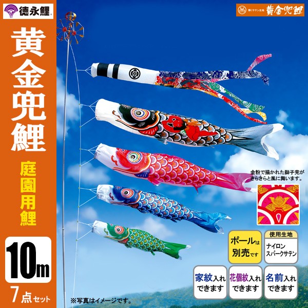 | 黄金兜鯉 庭園用大型鯉のぼり ポール別売り | 7m鯉3匹 7m鯉4匹 7m鯉5匹 | 8m鯉3匹 8m鯉4匹 8m鯉5匹 | 9m鯉3匹 9m鯉4匹 9m鯉5匹 | 10m鯉3匹 10m鯉4匹 10m鯉5匹 |