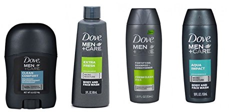 Dove Mens Deodorant + Body Wash Extra Fresh + Aqua Impact + 2 in 1 Shampoo Conditioner Travel Size