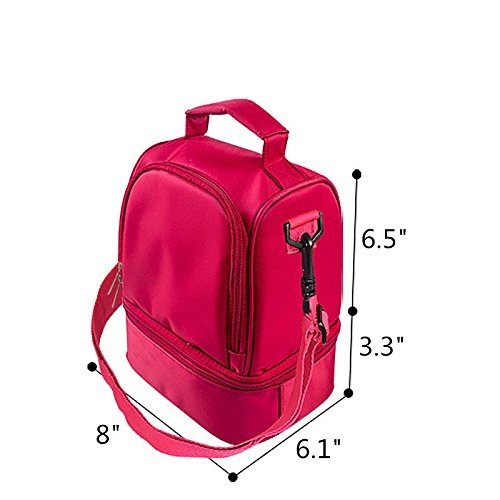 Two sections Design: keep cold and warm items separate. On top, a roomy pouch is great for chips, fruit, drinks snacks and cookies. Square bottom compartment used to carry your lunch, sandwich, salad and etc.