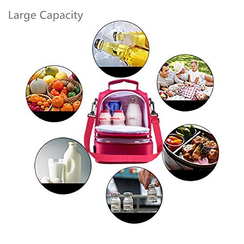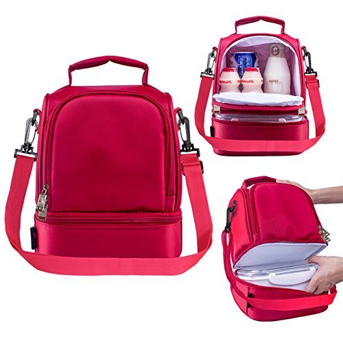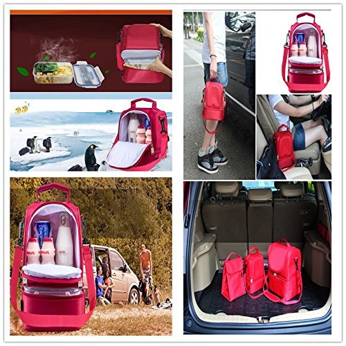 The lunch bag comes with adjustable shoulder straps and a comfortable handle for carrying