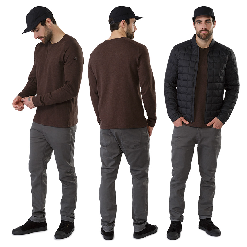 · 섬세한 원단의 질감과 소소한 디테일은 플라넬 셔츠 안쪽에 멋스럽게 레이어드 하거나 크루넥 셔츠 위에 덧입어 자연스러운 룩을 연출하기 좋다.