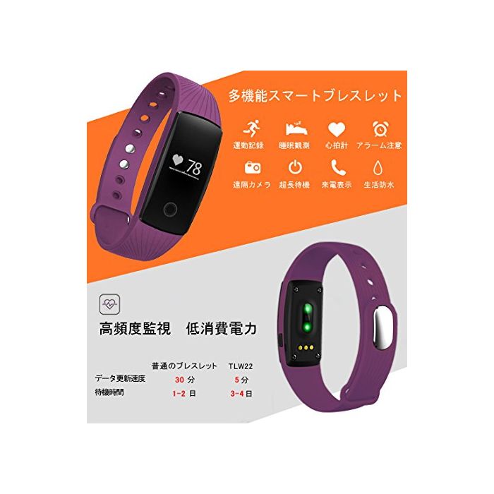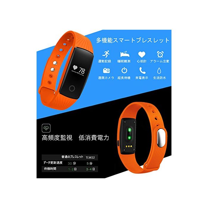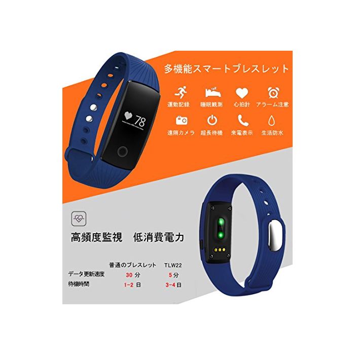【고성능】저 소비전력,쾌속 충전하고, 프레스 버튼을 8초를 계속 누르고, 초장대기 모드에 들어(오)갑니다(7~15일(날)).TLW22는 우수 심장박 수센서 를 가지고,전통 적인 센서 보다 데이터의 갱신은 계속 빨리 알게 되었습니다.알타이《무》심장박수는 5분마다 심박수의 데이터 수집을 행할 수 있습니다(보통은 30분).수집한 데이터는 어플리케이션을 이용해 휴대에 기록,분석 됩니다,운동을 촉진합니다.물론,생활 방수로도 대응.대응 기종:Bluetooth4.0탑재 Android4.4/iOS7.1다름은 그 이상의《스마호》단말.