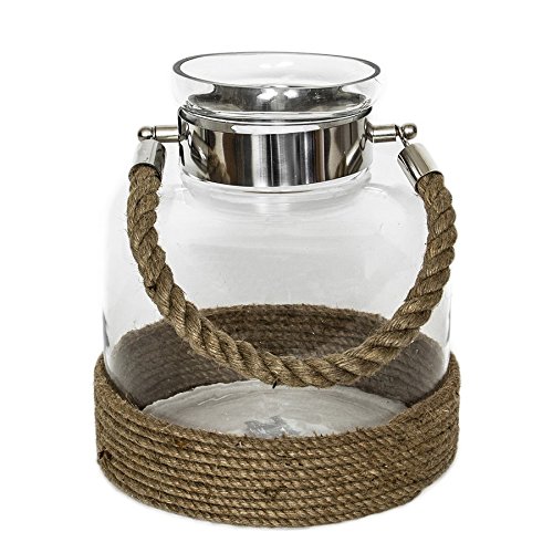 Clear Lantern with Wrapped Jute Bottom and Stainless Steel Collar VARIOUS SIZES AVAILABLE (10.75 in)