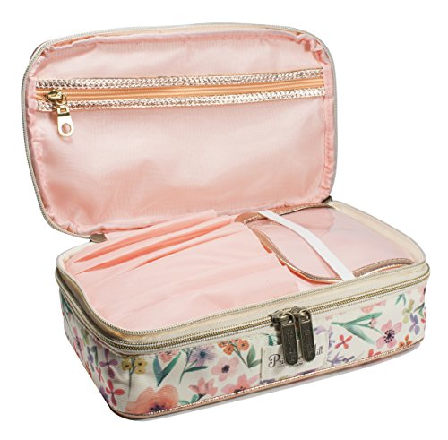 ReleaseDate : 2017-02-03 Studio : Allegro, A Division of Conair Corporation Publisher : Allegro, A Division of Conair Corporation Binding : Health and Beauty Product Description The Primrose Hill Double Zip Train Case offers lots of storage in a compact size. The top compartment features a 6-slot makeup brush organizer with protective flap to keep the bristles clean and a zip pocket for small items. The bottom compartment is great for makeup and other essentials. The bag features a handle, making it easy to take with you, while the flat shape makes it easy to pack into a suitcase or duffel. Made of textured polyester with metallic PU trim. 0