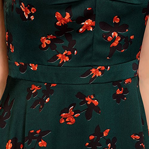 Noctflos Women's Dark Green Floral Print Cap Sleeve VNeck Casual Swing Dress
