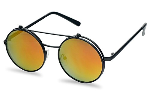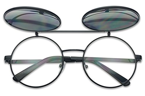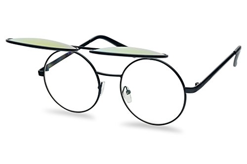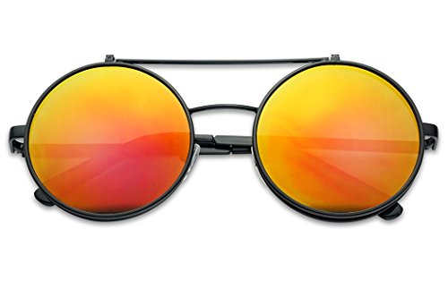 Round Mid-Size 55mm Flip-Up Color Reflective Mirrored Uv Clear Lens Django Sunglasses