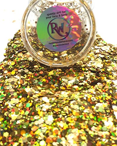 (Rave Wonderland)/Body/Body Glitter/DIRECT FROM USA/Gold Holographic Chunky Glitter Large 15G Comestic Glitter Festival Rave Face Body Hair Nails