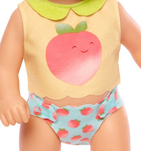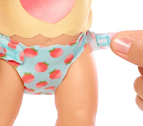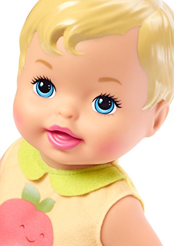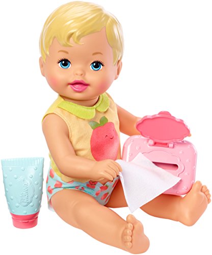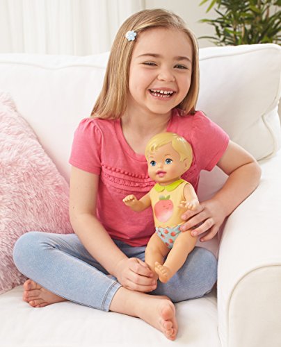 -. Binding : Toy -. Brand : Little Mommy -. EAN : 0887961554625 -. Feature : Now little mommies can celebrate the fun and joy of daily routines and caring for their baby! / This little everyday moments diaper baby doll includes changing-themed clothing and piece-count for "everyday moments." / Baby wears an adorable shirt with a large peach graphic and a velcro diaper with peach pattern / The diaper comes on and off for real baby changing play / Also includes a pink-detailed wipe case, with a cloth wipe inside, and diaper ointment tube (no ointment included) -. Label : Mattel -. Manufacturer : Mattel -. Model : FLB74 -. MPN : FLB74 -. NumberOfItems : 1 -. PackageQuantity : 1 -. PartNumber : FLB74 -. ProductGroup : Toy -. ProductTypeName : TOYS_AND_GAMES -. Publisher : Mattel -. ReleaseDate : 2017-08-22 -. Studio : Mattel -. Title : Little Mommy Everyday Moments Peach Doll -. UPC : 887961554625 -. Warranty : No Warranty