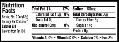 -. Feature : 2.2 oz (62g) / 270 Calories / Naturally Sweetened / Nothing Weird!