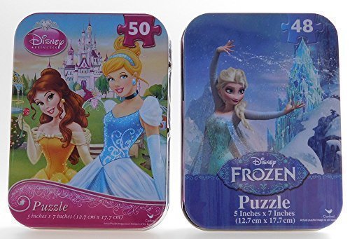 -. Title : Disney Princess and Frozen Mini Jigsaw Puzzle in Collectible Tin 2 Puzzle Set