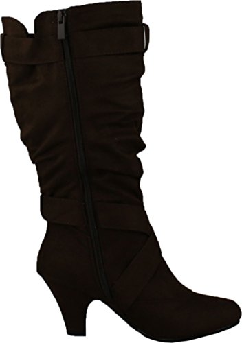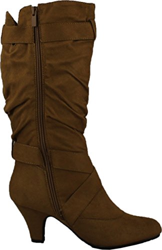 Binding : Apparel Product Description This is a very sexy midcalf boots that can be a dress up or down! Pair it with your favorite skinny jeans! Featuring faux suede, metal ring strap decor, round closed toes, side zipper, ruched details, cushioned footbed, and finished with smooth soles. 0