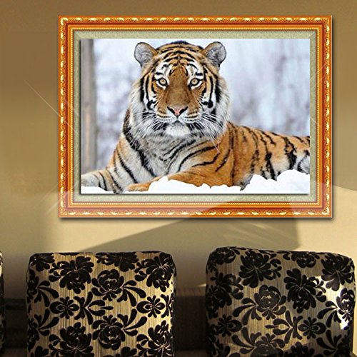Pasutewel 5D Diamond Painting DIY Full Drill Rhinestone Handmade Cross Stitch Diamond Mosaic Embroidery Wall Craft Decor - Tiger On Snow 45x30cm