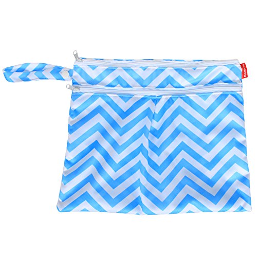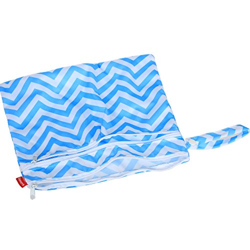 Damero New Cute Travel Baby Wet and Dry Cloth Diaper Organizer Bag, Blue Chevron