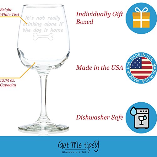 Studio : Got Me Tipsy Publisher : Got Me Tipsy Product Description The Got Me Tipsy It's Not Drinking Alone if The Dog is Home Funny Wine Glass is made out of high quality Glass and guaranteed to last. If you're shopping for a gift, you've found the one. Just sit back, click add-to-cart, and have a great gift delivered to their door, on-time, in an attractive gift box.