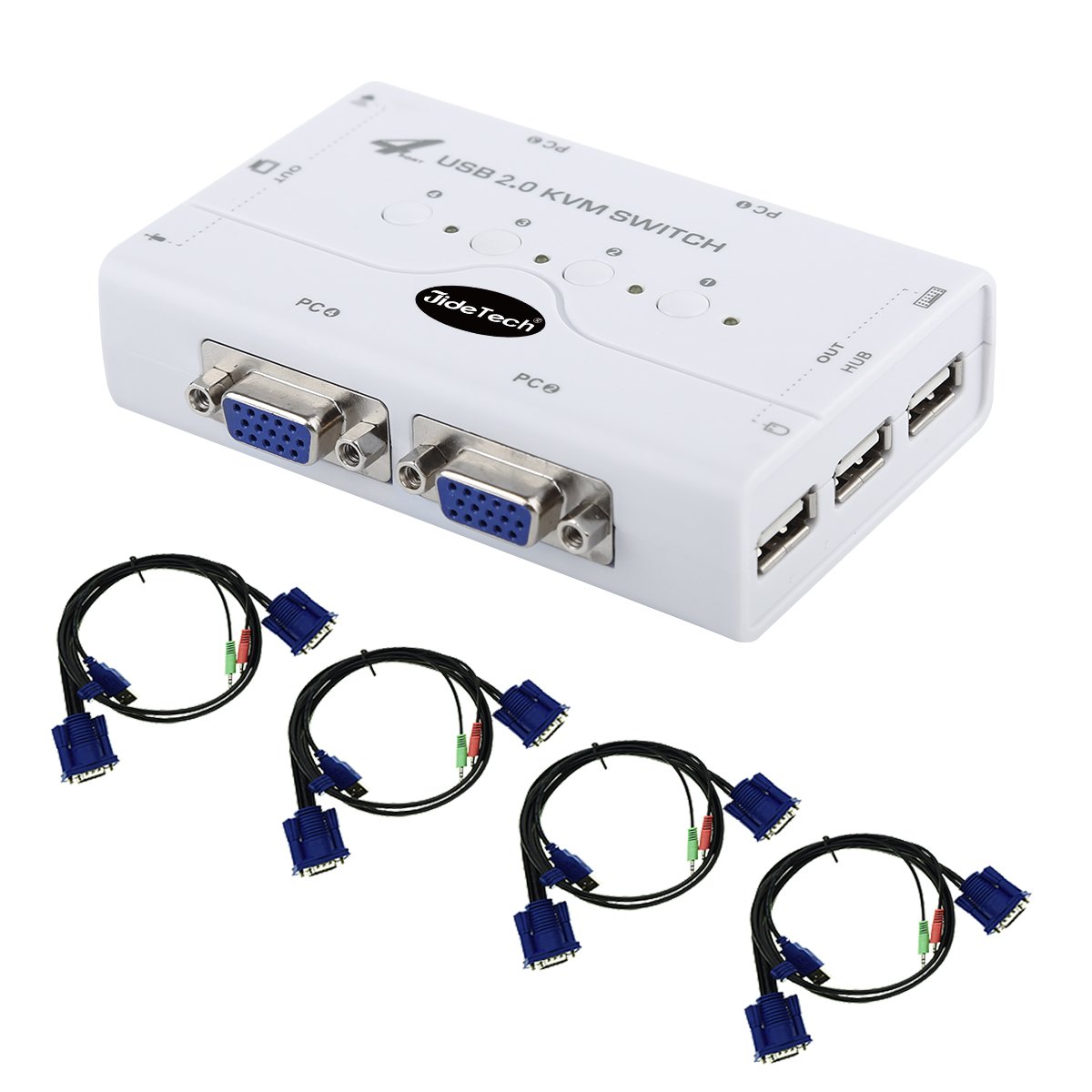 A KVM switch with a USB hub interface supports U disk and other USB devices.